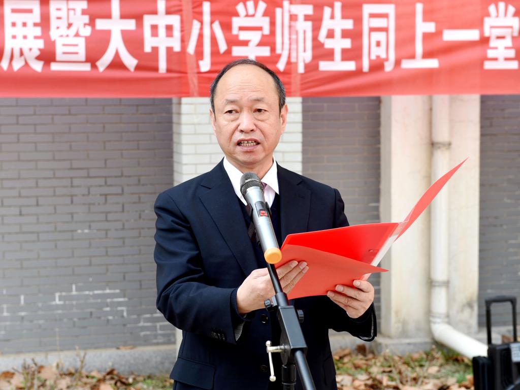 党委书记胡连利作开讲指导。胡连利指出,1949年3月23日,中共中央机关从河北省平山县西柏坡出发前往北平的时候,毛泽东同志说:“今天是我们进京赶考的日子。”这是一句意味深长的话。75年的实践证明,我们党在这场考试中取得了优异成绩。2024年2月,中共中央印发了《党史学习教育工作条例》。我们今天举行的文献收藏展和大中小学师生同上一堂思政课活动,就是贯彻《党史学习教育工作条例》的实际行动。2024年3月,是习近平总书记在全国思想政治理论课教师座谈会上发表重要讲话5周年。思政课教师要牢记习近平总书记殷切嘱托,践行“六要”标准,坚持“八个”统一,让思政课成为一门有温度的课,激励广大青少年自觉听从党和人民召唤,立鸿鹄志、做奋斗者,为实现中华民族伟大复兴的中国梦贡献青春力量。