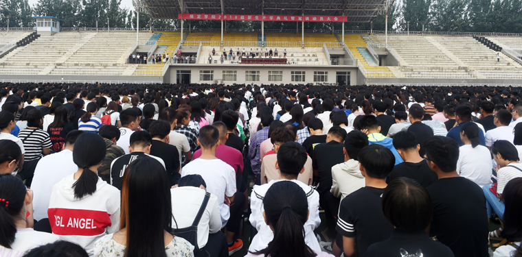 9月10日上午,保定学院2018级新生开学典礼暨军训动员大会在体育场隆重举行。校领导王军、胡连利、宋书通、刘清波、曹荣、回顺利、高颖、徐景星,相关部门和各学院负责人、新生辅导员、承训部队教官、4218名2018级新生参加典礼。典礼由副校长回顺利主持。