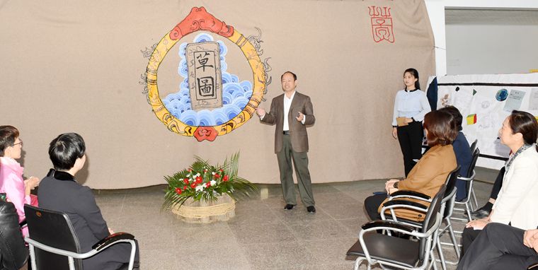 随后,校领导陪同来宾们参观了校园和草图文化创意工作室。