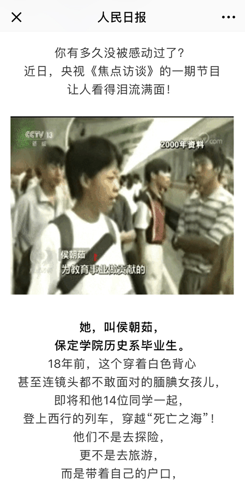 人民日报官微头条推送我校西部支教毕业生群体事迹