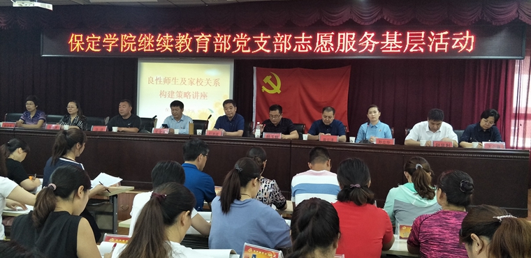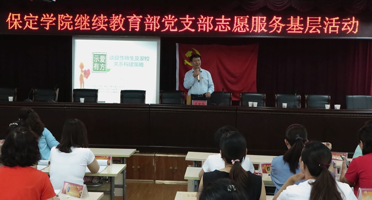 接下来的活动中,继续教育部党支部书记王全乐作了题为《构建良性师生关系,增强职业幸福感》的专题讲座,涞水小学全体教师聆听了讲座。