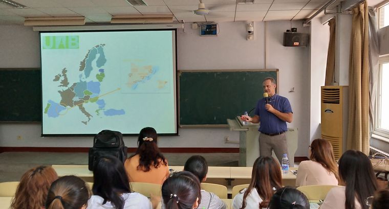6月11日,西班牙巴塞罗那自治大学语言学院院长帕斯卡•绍恩、国际推广负责人苏珊娜•佩雷斯女士及中国办公室有关负责人一行6人访问我校。