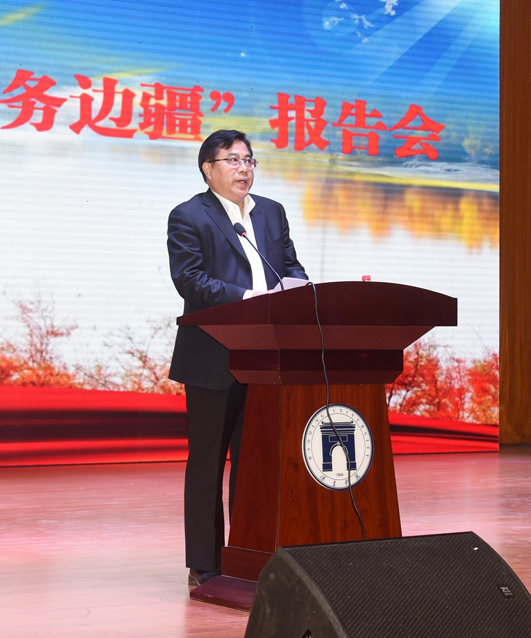 最后,省援疆工作前方指挥部党委副书记、新疆巴州党委常委、副州长张树新在报告会上讲话。他指出,习近平总书记的回信精神博大精深、常学常新,永远是新时代青年人奋斗和奉献的方向。他表示,在深入学习贯彻回信精神的实践中,河北援疆干部人才始终与大家一路同行。他向与会师生介绍了新疆、巴州在以习近平同志为核心的党中央治疆方略指引下正在发生的历史性变化,并诚挚地邀请更多的人到新疆施展才华建功立业。