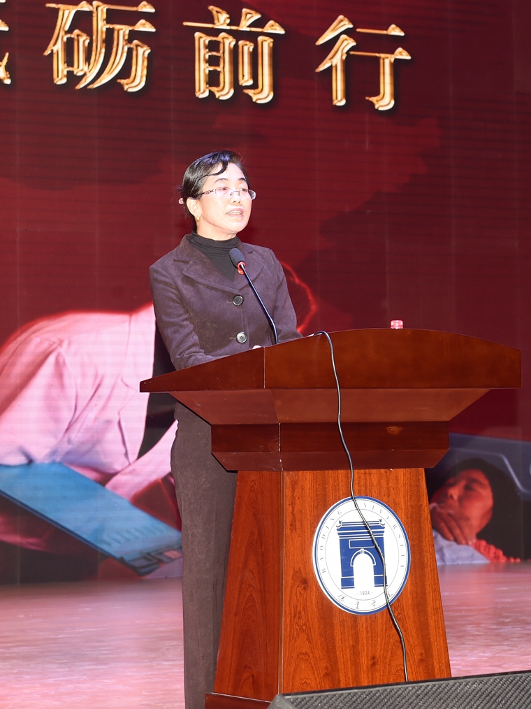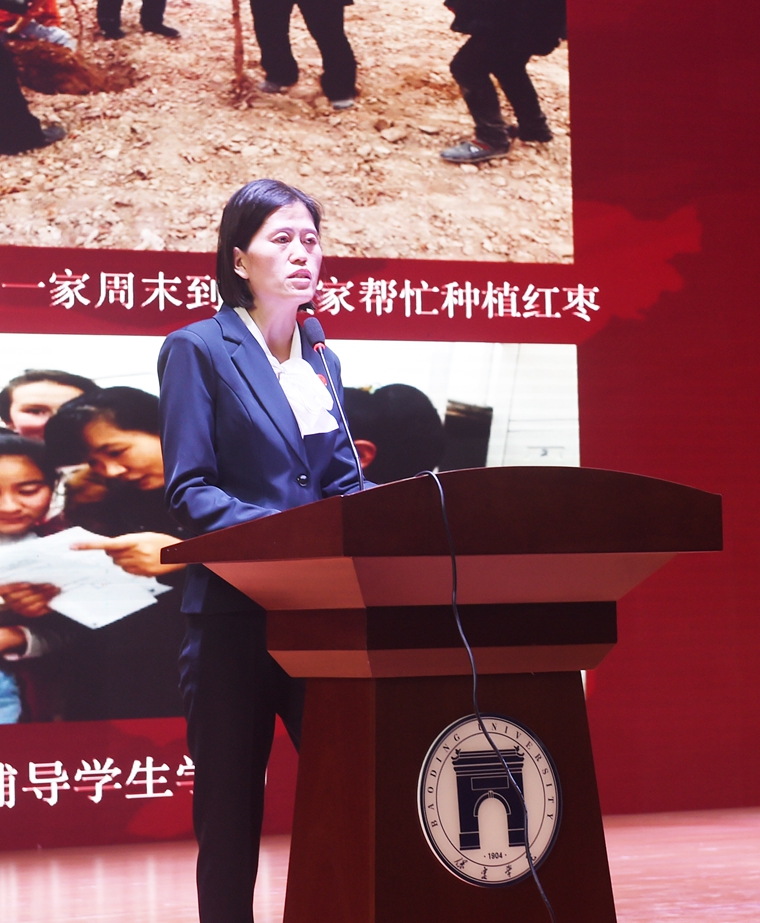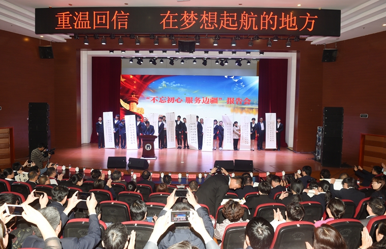 在下午举行的“不忘初心,服务边疆”报告会上,西部支教毕业生代表李桂枝、苏普、黄淑荣用朴实的话语,讲述了奔赴西部的人生选择、奉献边疆的一颗初心、教书育人的师者之爱。十几年的支教生活,改变的是他们的青春容颜,却无法改变他们对理想青春无悔地追寻,对脚下的西部大地、对学生和当地群众的挚爱深情。李桂枝这样说:“我们从来不觉得支教生活苦,相反,因为新疆有壮美的风光,有淳朴的人民,有可爱的学生,有信任的家长,有我们青春的汗水和践行理想的记忆,我们是快乐和幸福的!”随后,在新疆顶岗实习的保定学院学生代表侯晓晔、援疆干部代表余文丽和兵团第二师华山中学校长邱成国分别发言。
