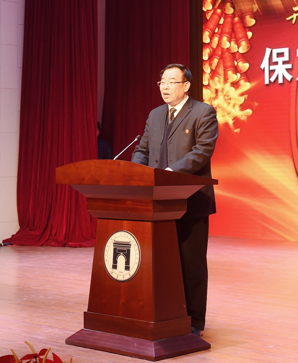 院党委书记王军发表了热情洋溢的新年致辞。他从党建、转型、文化等方面回顾了2017年我院取得的成绩和进步,并代表学院党政领导向为改革和发展做出积极贡献的全体师生致以节日的问候和崇高的敬意!王书记指出,2017年,十九大精神指引我们走进新时代,学院稳步推进“十三五”规划,各项工作蒸蒸日上。新时代赋予我们新使命,新学院必将焕发新激情。我们要在新的一年里,更加紧密地团结在以习近平同志为核心的党中央周围,以习近平新时代中国特色社会主义思想为统领,不忘初心,牢记使命,高举旗帜,奋勇前进,以永不懈怠的精神状态和一往无前的奋斗姿态,加快建设新时代的新学院,奋力谱写保定学院转型发展的新篇章!
