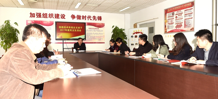 3月15日上午,院党委书记王军出席信息技术系党总支2017年度组织生活会,与广大党员深入交流并作重要讲话。王书记对此次组织生活会给予充分肯定,认为会议准备充分,查找问题到位,整改措施明确,对今后工作进行了全面谋划。王书记对今后基层党建等方面工作提出四点要求:一是要持续深入学习宣传贯彻党的十九大精神,要深刻理解研究十九大报告的丰富内涵,特别是深入学习习近平新时代中国特色社会主义思想,把握新时代、新形势下的新要求、新思想、新战略,充分发挥高校教育工作者作为思想、文化传播者的重要作用。二是要深入贯彻落实学院党委关于纠正“四风”和作风纪律专项整治工作要求,严格执行婚丧喜庆事宜有关规定,提振精神状态。三是要坚定树立“教书与育人并重”的教育思想,深入开展“讲传统、讲感恩、讲文明、讲法制、讲修身”五讲主题教育活动,切实提升思想育人、文化育人质量。四是要结合自身专业特色,巩固现有发展成果,继续在课程建设、实习实训等转型发展深层次问题上研究探索,提升发展质量,为建设新时代受人尊敬的新学院努力奋斗。