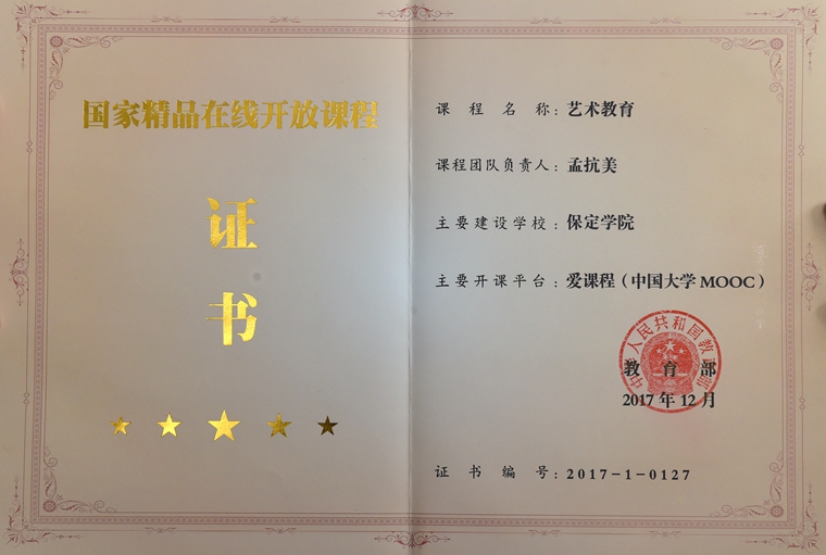 1月15日,教育部在京召开在线开放课程建设与应用推进会和新闻发布会,发布了首批国家精品在线开放课程认定结果,120所高校的490门课程被认定为首批“国家精品在线开放课程”,我院孟抗美教授及其团队建设的“艺术教育”课程成功入选,实现了继十一五“国家精品课”、十二五“国家精品资源共享课”、十三五“国家精品在线开放课程”的课程建设的三次连续入选。