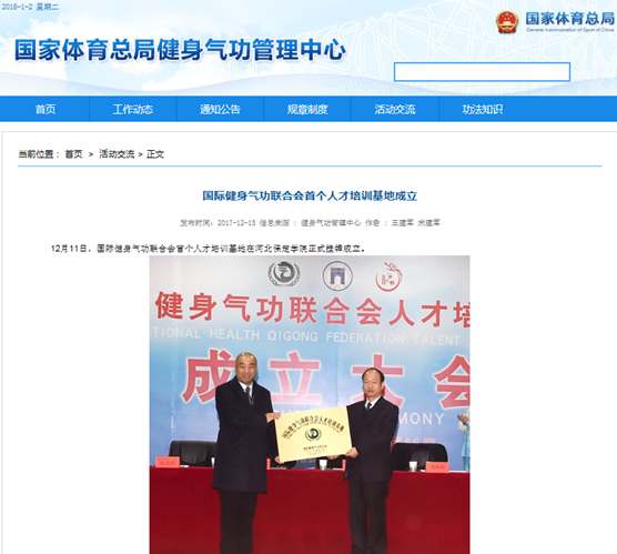 多家国家级媒体对我院成为首个“国际健身气功联合会人才培训基地”进行报道