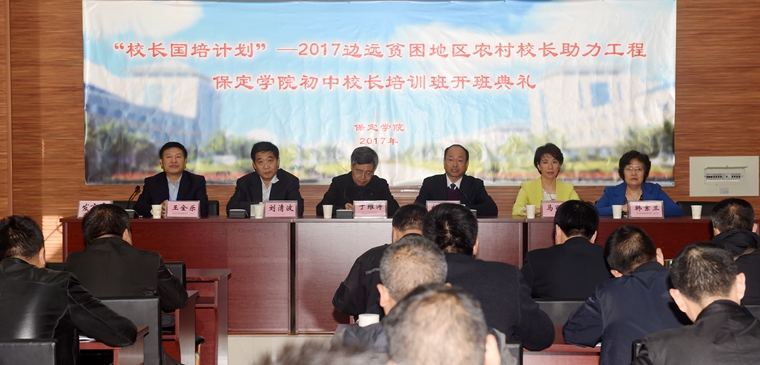 10月11日上午,教育部“校长国培计划”—2017年边远贫困地区农村校长助力工程项目保定学院培训班二班开班典礼在综合楼211室隆重举行。教育部中小学校长和幼儿园园长国家级培训项目管理办公室副主任于维涛,我院院长胡连利、副院长刘清波及有关部门负责同志出席了开班典礼。来自全国14个省、11个民族的50名校长参加了开班典礼。开班典礼由副院长刘清波主持。