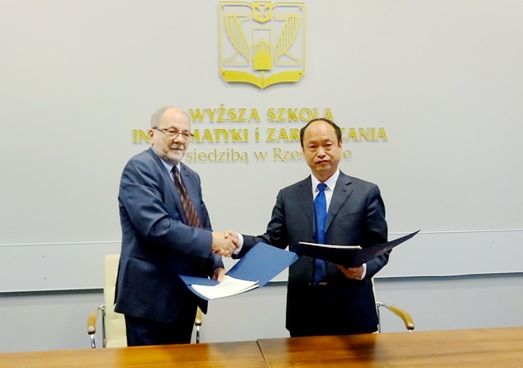 胡连利与波兰热舒夫信息技术与管理大学副校长安杰伊·兹尔克签署两校“2+2”项目合作协议