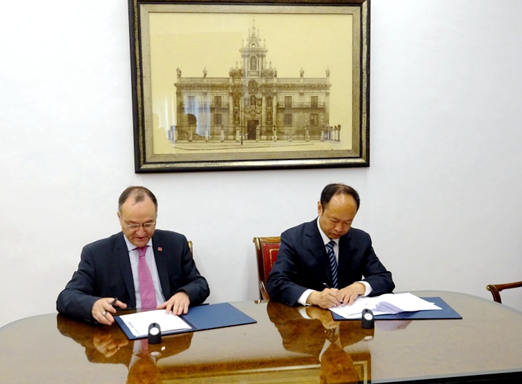 胡连利与西班牙巴亚多利德大学校长丹尼尔·米格尔圣何塞签署两校合作协议