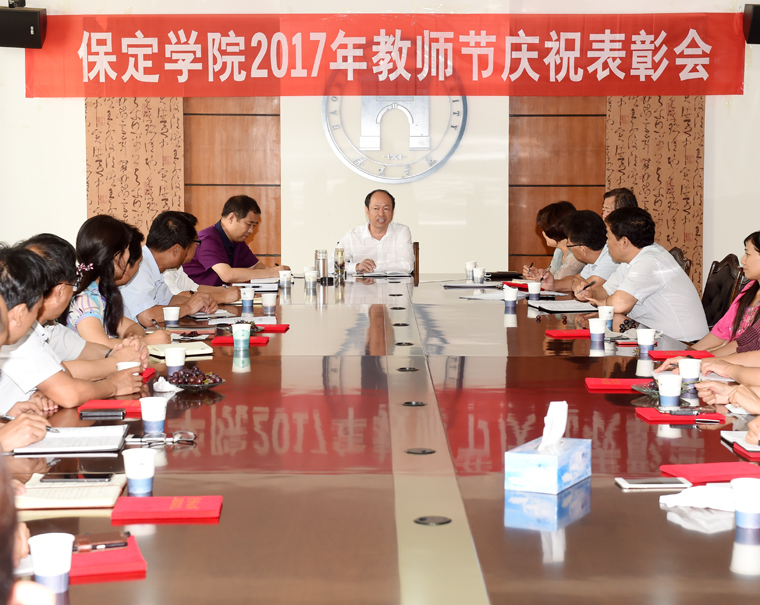 9月8日上午,我院在行政楼二楼会议室召开2017年教师节庆祝表彰会。院领导胡连利、宋书通、刘清波、曹荣、高颖与教师代表欢聚一堂,喜迎第33个教师节的到来。