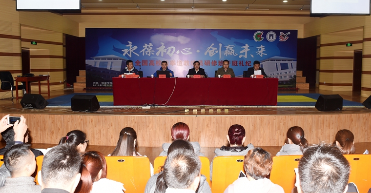 3月22日上午,2017年全国高校跆拳道教练员培训班开班典礼在我院音乐厅举行。