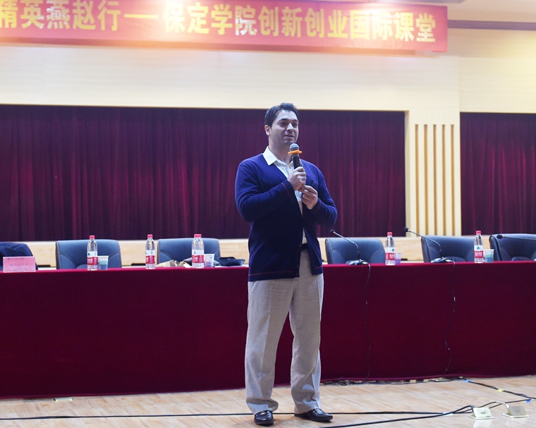 为响应国家“大众创业 万众创新”的号召,促进学生创业成才,由河北省外国专家局主办、我院承办的引智项目“欧美创业精英燕赵行”——保定学院创新创业国际课堂于11月29日下午在音乐厅举行。