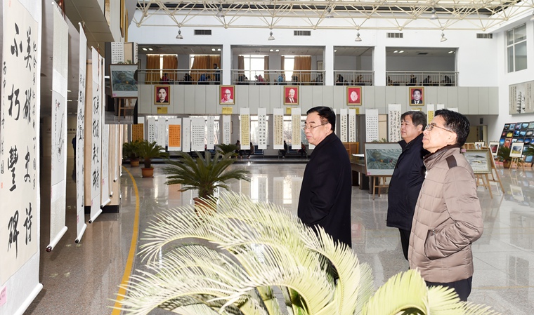 1214,我院“纪念长征胜利80周年师生书画摄影展”在图书馆大厅开展。院领导王军、宋书通、徐景星兴致勃勃地参观了展览,院党委书记王军还为本次展览题词——丰碑。本次展览以纪念长征胜利80周年为主题,共展出了师生的书法、绘画和摄影作品160余幅。这些作品具有较高的艺术水准,表达了广大师生对长征精神的理解和传承,对祖国的无限深情。