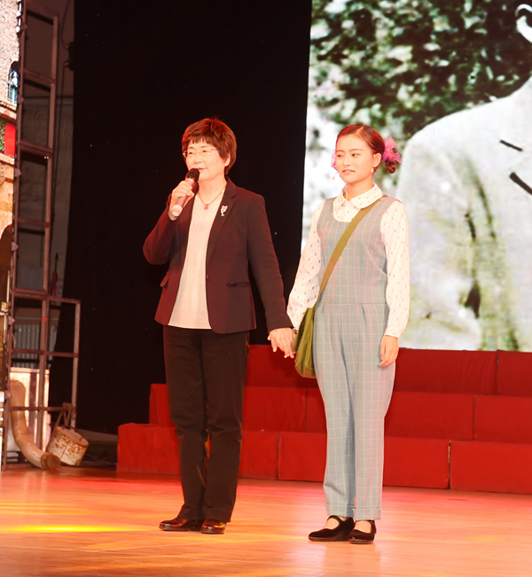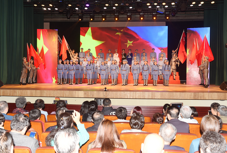 演出接近尾声,郑小提女士在热烈的掌声中走上舞台,她用饱含深情的语言表达了对父亲那一辈无产阶级革命者的无限崇敬,她希望今天的人们永远唱着这些歌曲,铭记党的光辉历程,把伟大的长征精神一代代传下去,在实现中国梦的征途上阔步向前。