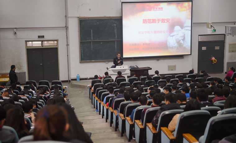 为进一步加强校园安全工作,增强广大学生的消防安全意识,提高自护自救能力,11月9日下午,我院安全工作处邀请河北省消防安全专家在D楼115室举办了两场消防安全知识讲座,800多名学生聆听了讲座。