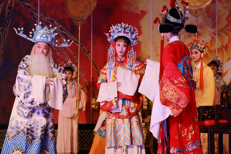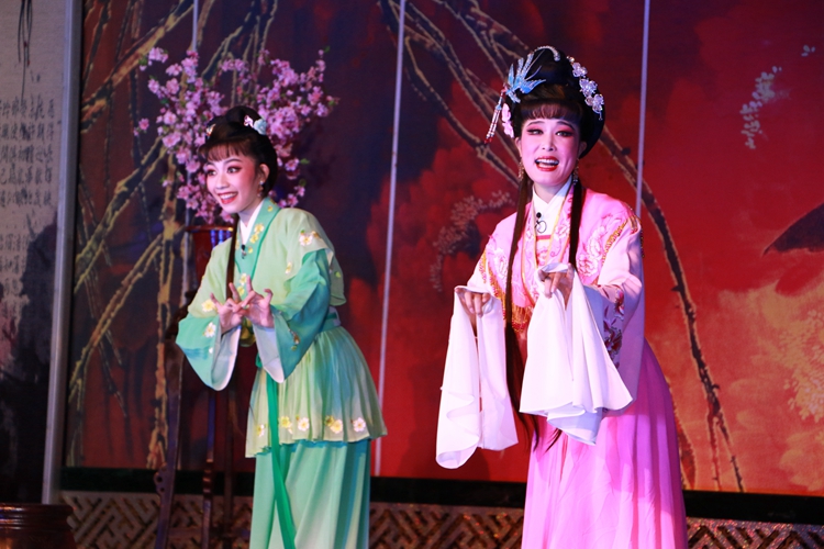 马自俊简要介绍了再芬黄梅艺术剧院的情况及黄梅戏的发展历史、艺术魅力。随后,经典黄梅戏《女驸马》正式开演。演出由国家一级演员吴美莲领衔主演,讲述了民女冯素珍冒死救夫,经历了种种曲折,终于如愿以偿成就美满姻缘的故事。艺术家们深厚的唱功、精湛的演技赢得了广大师生阵阵热烈的掌声。
