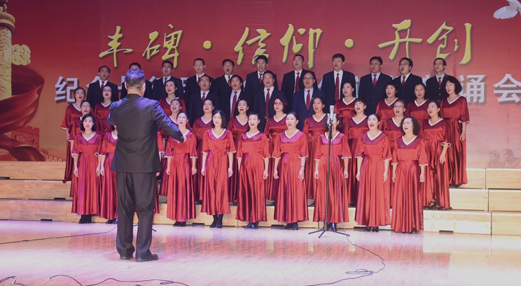 11月23日下午,“丰碑 信仰 开创”纪念长征胜利80周年诗歌朗诵会在我院音乐厅隆重举行。院领导胡连利、高颖与200余名师生一起聆听了朗诵会。