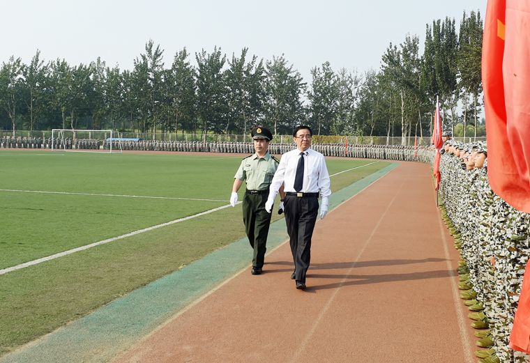 迎军旗仪式后,院党委书记王军检阅了士气高昂的2016级新生参训方队。