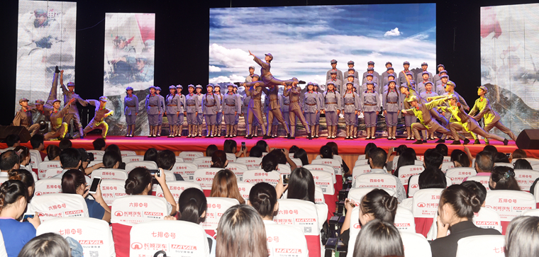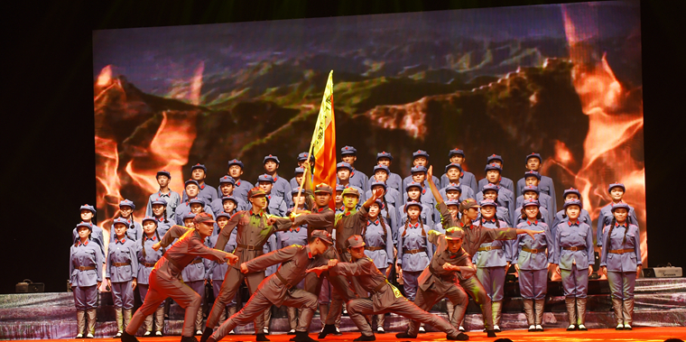9月28日晚7时,由我院原创的情景组歌剧《音乐家郑律成的长征路》在保定市百世开利会展中心成功首演。保定市市长马誉峰,市委常委、宣传部部长肖占乐,市政府副秘书长张墀,我院领导王军、胡连利、刘清波、张德义、曹荣、回顺利、高颖、徐景星,全体中层干部和师生代表共800余人观看了演出。