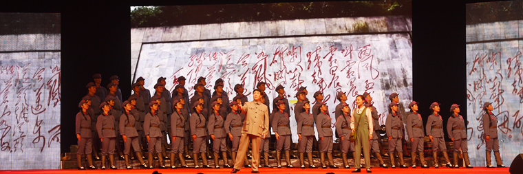 该剧以音乐家郑律成和女儿郑小提重走长征路为主线,巧妙地连缀起郑律成作曲的《十六字令》《娄山关》《昆仑》《六盘山》《长征》《延安颂》《军歌》等七首经典作品,这些作品经过我院合唱团充满激情地演唱,以其强大的艺术魅力激荡着现场每个人的心。演出最后,郑小提女士走上舞台,用饱含深情的语言表达了对父亲那一辈无产阶级革命者的无限崇敬,她希望今天的人们永远唱着这些歌曲,铭记党的光辉历程,传承伟大的长征精神,在实现中国梦的征途上阔步向前。