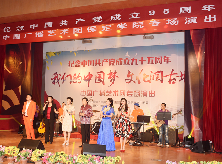 我院党委书记王军在演出开始前致辞,他首先对中国广播艺术团在炎炎夏日将高雅艺术带到师生身边表示衷心感谢。他简要介绍了我院近年来在艺术教育方面通过不断探索和大胆尝试所取得的成绩,真诚希望能与中国广播艺术团加强联系,希望艺术家们对我院艺术教育教学提出宝贵意见和建议,对师生们在艺术上给予指导和帮助。王书记指出,今天的演出主题是“我们的中国梦 文化润古城”,其实纵观我院办学史,一代又一代保定学院人怀揣启钥民智强我中华的梦想,与时代同呼吸,与民族共命运,谋国家之强盛,求科学之进步,始终勇敢地站在历史的潮头。今天的保定学院人,将在京津冀协同发展的大势中,勇于创新,砥砺前行,为保定经济社会发展的全面进步,创造出无愧于时代、无愧于人民的崭新业绩。
