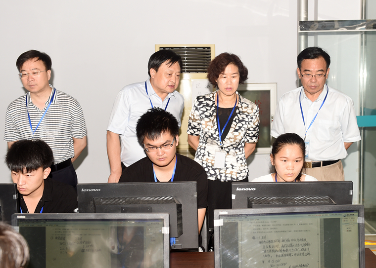628上午,保定市政府副市长闫立英、副秘书长张墀、市考试院院长周立峰、市教育局副局长张国忠一行来到我院,在院党委书记王军、院长胡连利的陪同下视察了中考阅卷工作。闫立英副市长代表市政府亲切慰问了冒着酷暑参与阅卷工作的师生,勉励大家一定要以高度负责的态度、一丝不苟的作风圆满完成阅卷任务。