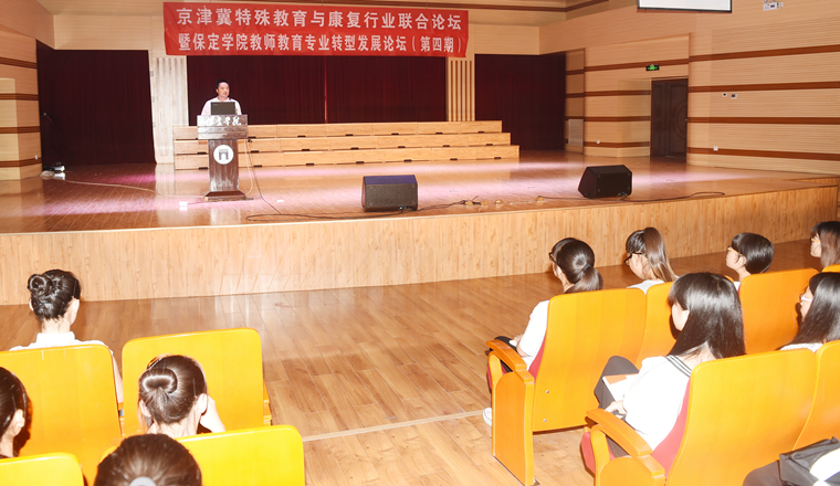 6月29日上午,我院教师教育专业转型发展论坛举办第四期,本期论坛吸引了来自北京、天津、石家庄及保定等地特殊教育和医疗康复机构的多位专家学者,就“一个目标、一份情怀、一种大爱——我与特殊教育和康复工作”这一主题进行了深入研讨和成果分享。