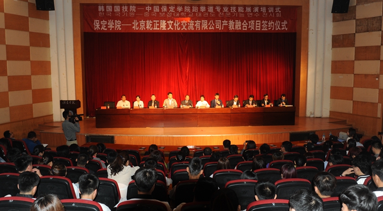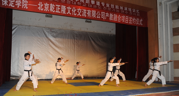 韩国国技院、保定学院跆拳道专业技能展演培训式暨保定学院与北京乾正隆文化交流有限公司产教融合项目签约仪式隆重举行