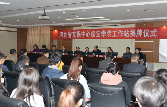 11月11日上午,河北省文物保护中心保定学院工作站揭牌仪式在我院教工之家举行。河北省文物局副局长李恩佳,河北省文物保护中心主任任亚珊、书记赵志良、副主任曹丽芹,保定市文物局副局长李秋占,保定市文物管理所主任侯璐,我院党委书记王军、院长胡连利、副院长高颖出席揭牌仪式。历史系负责同志和100余名师生参加仪式。