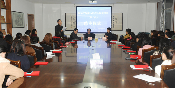 11月16日下午,我院新入职教师第二期岗前培训结业仪式在行政楼二楼会议室举行。