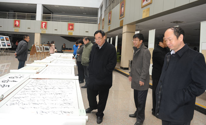 11月18日,我院“中国梦·笔墨魂”教职工书画摄影展在图书馆大厅开展。院领导王军、胡连利、宋书通、张德义、高颖、徐景星和师生们一起参观了展览。院党委书记王军欣然为展览题词“墨魂”。