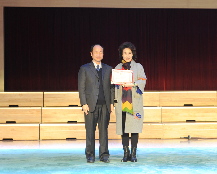 院长胡连利为河北梆子剧院院长许荷英颁发客座教授聘书