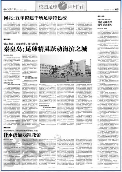 8月28日,《中国教育报》在5版以《汗水浇灌残缺花蕾》为题,报道了我院体育系教师张春武、学生张硕义务指导培训保定市特教中心足球队的感人事迹。现将全文转载如下: