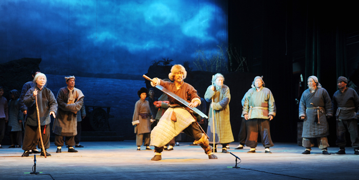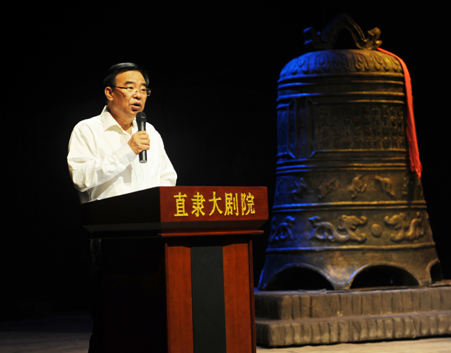 我院党委书记王军在演出开始前致词。王书记说:“《红旗谱》的作者著名作家梁斌先生是我院校友中的杰出代表。他亲身经历了1932年的爱国护校斗争,并把这场斗争写入了长篇小说《红旗谱》。梁斌先生数次回访母校,一直关注着母校的建设和发展。今天,我们重温红色经典《红旗谱》,要深切缅怀梁斌先生伟大的一生,学习他为真理而战的奋斗精神,学习他为人民写作的奉献精神。我们更要进一步认清并坚信一个颠扑不破的真理:中国人民只有在中国共产党的领导下,才能求得翻身解放,才能实现民族复兴和国家强盛的梦想,才会有幸福的今天和更加美好的未来。希望我们每一个人,都能从以《红旗谱》为代表的红色经典中,汲取奋斗的必胜信心和前进的不竭动力,勇于开拓,不断创新,为实现的中国梦贡献最大的力量。”
