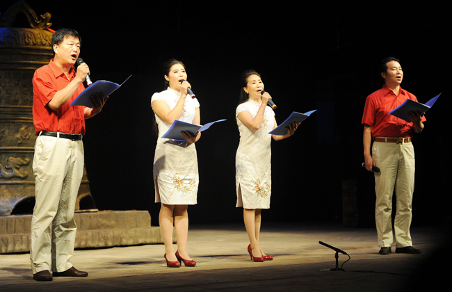 我院中文系教师们朗诵了原创诗歌《梁斌先生,我是您的校友》。