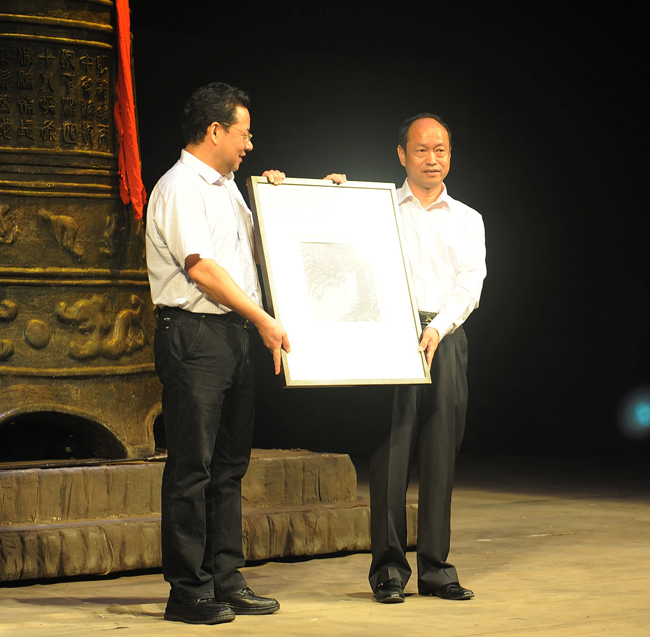 院长胡连利与天津人民艺术剧院院长钟海互赠礼物
