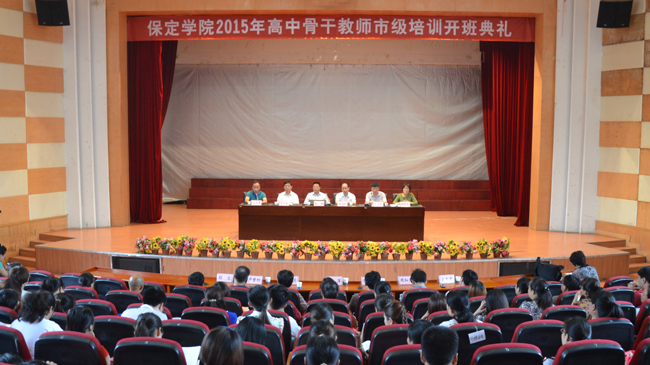 7月20日上午,保定学院2015年高中骨干教师市级培训开班典礼在图书馆多功能厅隆重举行。我院院长胡连利、保定市教育局副局长刘恒出席典礼,我院有关系部负责同志和740余名参训学员参加典礼。