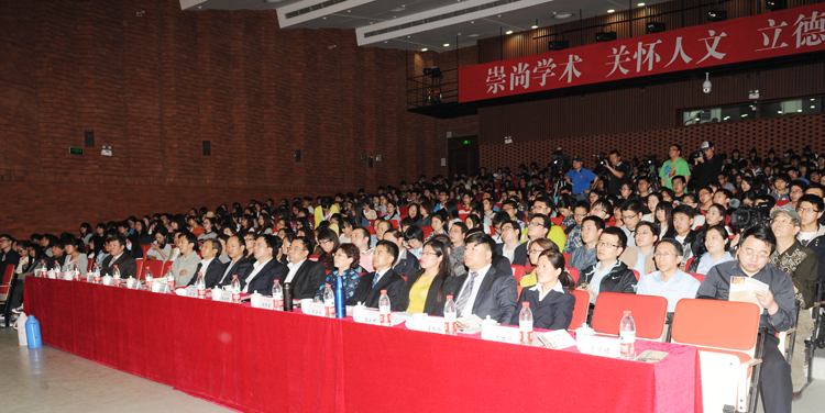 4月24日,我院领导王军、胡连利、徐景星带领西部支教毕业生群体先进事迹宣讲团走进北京联合大学,在应用文理学院为来自全校各学院的600余名师生作了《安放西部的青春与梦想》主题宣讲。宣讲团成员院党委常委徐景星,西部支教毕业生代表、新疆且末县中学教师李桂枝,院党委宣传部部长马丽娟,外语系党总支书记刘世斌,思想政治理论课教研部主任赵云耕,中文系副教授王佳玲,为现场师生讲述了一个个发生在西部的感人故事,一段段献身雪域高原的支教历程。报告厅内一次次响起热烈的掌声,很多师生感动得流下了热泪。中国教育报、中国教育电视台、北京电视台等媒体进行了现场报道。