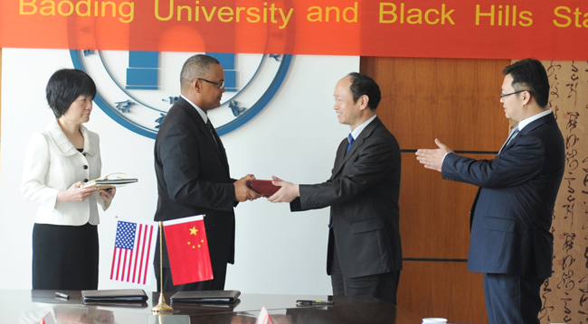 25日上午,院领导王军、胡连利、徐景星会见了来访的美方客人。院党委书记王军代表我院致欢迎辞,美国黑山州立大学校长托马斯·雷蒙德·杰克逊介绍了该校基本情况及美国应用型大学办学经验,双方就教育合作事宜进行了会谈。胡连利院长和托马斯·雷蒙德·杰克逊校长签署了校际合作备忘录及4项附件协议。