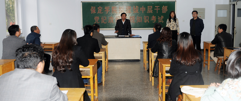 10月29日下午,我院举办拟提拔中层干部党纪政纪法规知识考试,考察拟提拔对象履行领导岗位职责应掌握的党纪政纪和廉政法规基本知识。