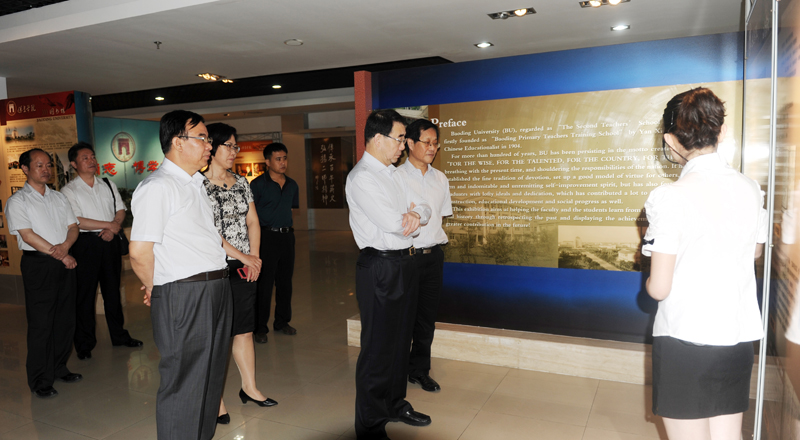 许宁一行参观了校史馆、图书馆,观看了西部支教宣传片《到西部教书去》,听取了我院党委书记王军关于学院西部支教情况及近期工作的汇报。许宁指出,习近平总书记给保定学院西部支教毕业生群体代表回了信,刘延东副总理作了重要批示,保定学院要认真研究如何抓住新机遇、落实新要求、提升新水平、跨上新台阶。一是提高认识,深入学习习近平总书记回信精神,要把学习习近平总书记的回信和习近平总书记的系列重要讲话结合起来,作为当前开展党的群众路线教育实践活动的一项重要内容。二是深入挖掘,放大效果。把保定学院西部支教群体背后那些可歌可泣、感人至深的故事通过报告文学、小说、影视作品等形式进行创作、提升,产生更加持久、深远的影响。三是既要考虑长远,也要兼顾当前。省教育厅、保定市、保定学院要继续加大西部支教工作力度,在创新落实上下功夫,鼓励更多的毕业生到基层、到人民中去建功立业,既要有立竿见影的效果,也要形成长效机制。