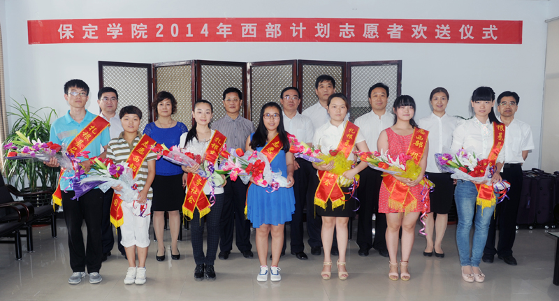 6月26日上午,我院举行2014年西部计划志愿者欢送仪式。院领导王军、崔勇、刘清波、张德义、曹荣、回顺利、高颖、徐景星,相关部门负责同志为王俊梅、王璐、张媛媛等7位西部计划志愿者送行。