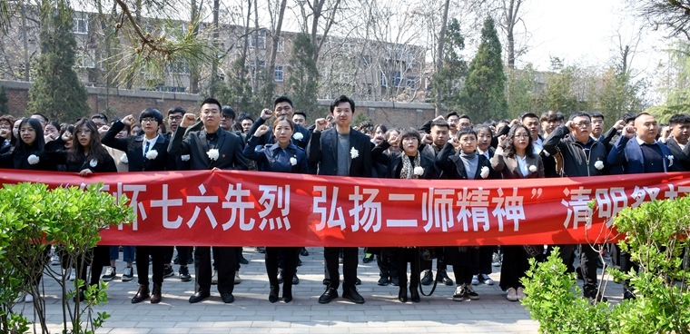 4月3日,校团委在“七六”烈士陵园举行“青春心向党 建功新时代”清明祭扫主题团日活动。团委负责同志、各学院团总支书记和学生代表共200余人参加活动。