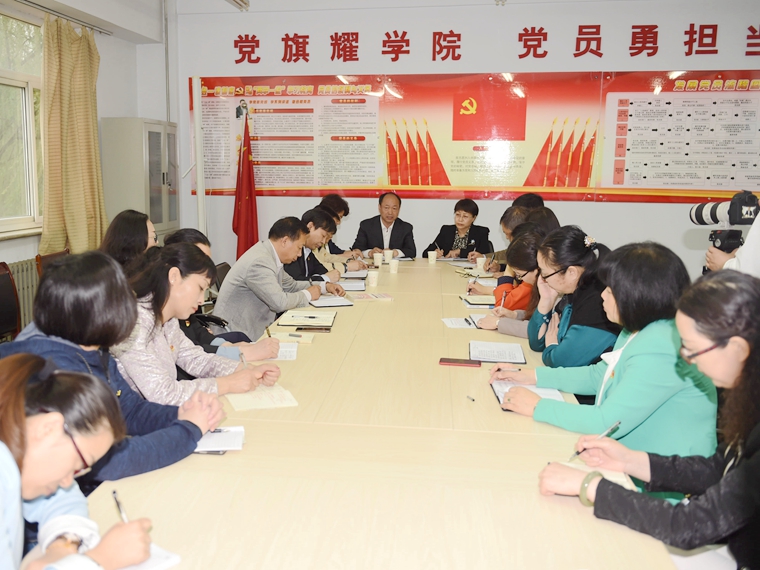 4月24日下午,我校党委书记胡连利、校长韩会玲和有关部门负责同志,来到思想政治理论课教学科研部与教师们进行集体备课,并对思想政治理论课教学工作进行调研。