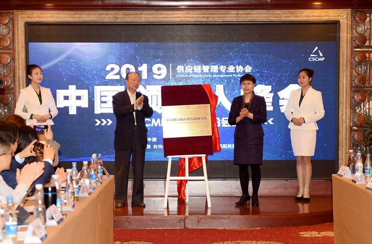 校长韩会玲和CSCMP中国主席丁俊发共同为中国雄安新区供应链研究院揭牌