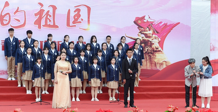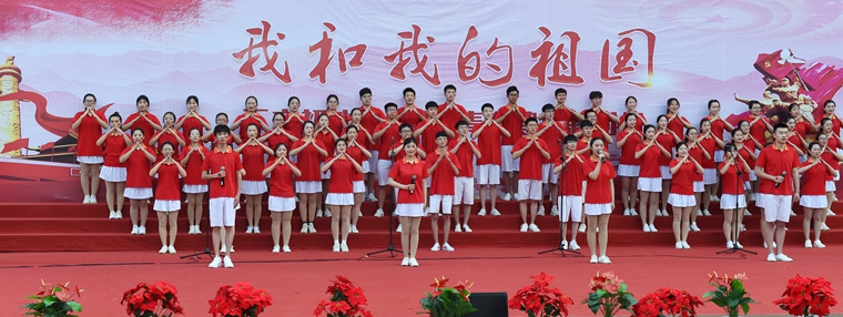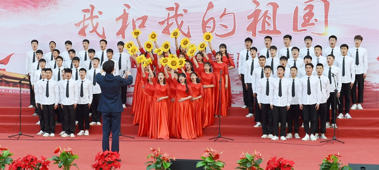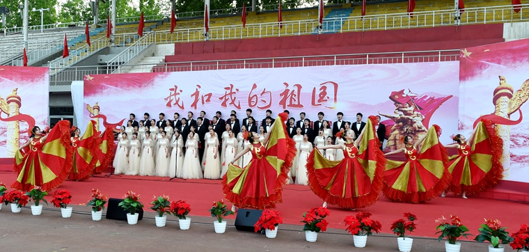 在随后举行的艺术展演活动中,14个学院的代表队以合唱、朗诵、舞蹈等各具特色的形式,表演了《青春与祖国同行》《我们都是追梦人》等节目,深情表达了对祖国70周年华诞的祝福,讴歌了伟大的新时代,展现出保定学院人为实现中华民族伟大复兴的中国梦贡献力量的信心与豪情。活动在全场数千名师生激情昂扬的大合唱《我和我的祖国》中圆满落幕。
