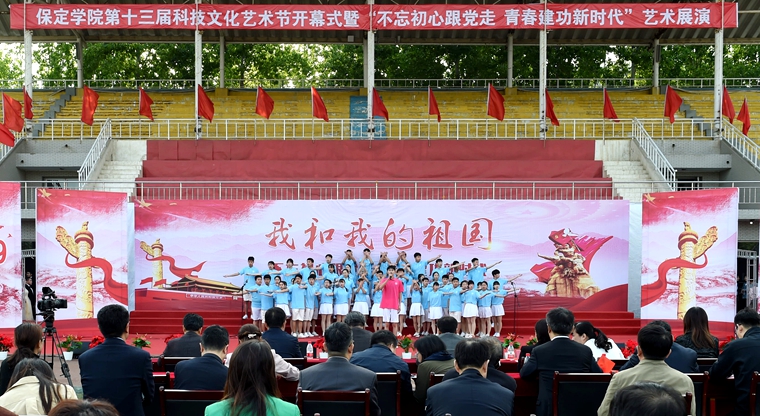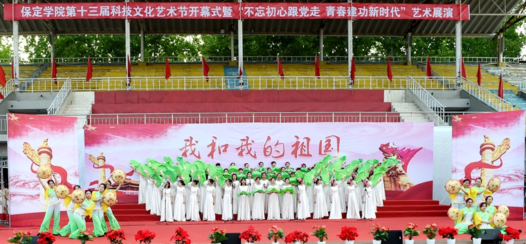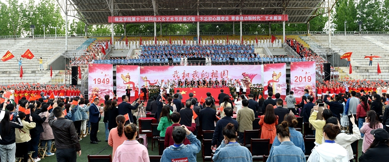 4月25日下午,保定学院第十三届科技文化艺术节开幕式暨“不忘初心跟党走 青春建功新时代”艺术展演在体育场隆重举行。团市委书记何会岭,我校领导韩会玲、宋书通、曹荣、回顺利、高颖、徐景星,驻保高校团委书记与3000余名师生共同参加活动。