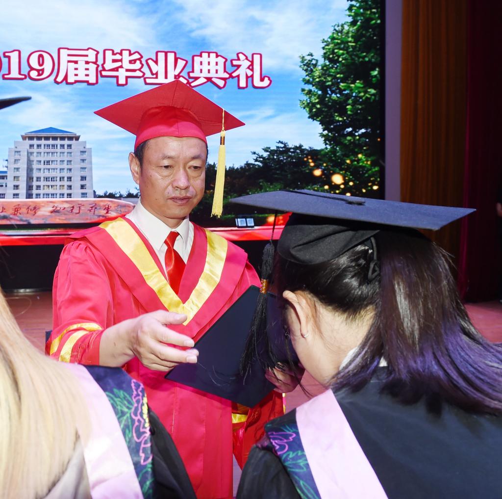 校党委书记胡连利为毕业生拨正流苏、颁发证书